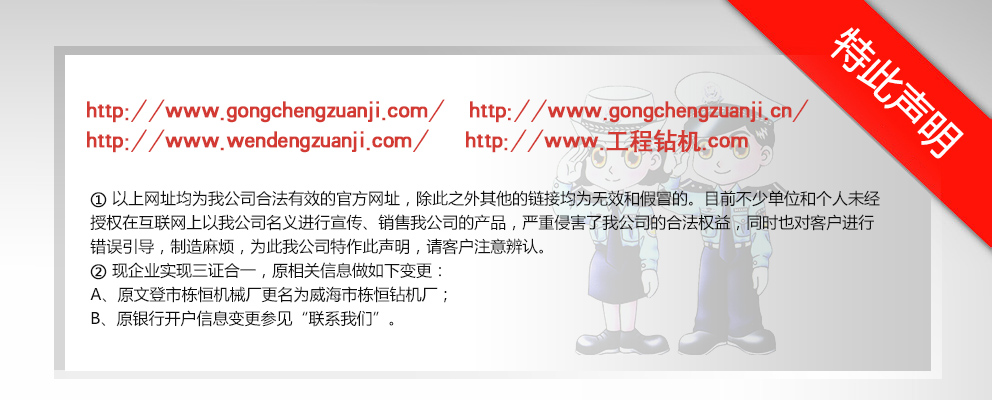 威海市棟恒鉆機廠隸屬于文登市工程鉆機廠,主要生產(chǎn)、銷售工程鉆機。它坐落于文登市西鋪頭工業(yè)園,這里科技發(fā)達,交通便利,制造業(yè)集中。 自1982年建廠以來,經(jīng)過多年的優(yōu)化改革和沉淀積累,擁有精密、大型加工設(shè)備近百臺的生產(chǎn)企業(yè)之一。現(xiàn)在研制成功的GJ-400、GJ-250S、GJ-250A、GJ-240S、GJ-240A、GJ-180S、GJ-180A型等鉆機。在其它產(chǎn)品上,企業(yè)建立了長期、中期、短期的發(fā)展規(guī)劃,一系列的高性能產(chǎn)品正在不斷推出中,企業(yè)應市場需求對系列產(chǎn)品進行了優(yōu)化組合,開發(fā)了與之對應配套的三腿、四腿單天車輪、雙天車輪鉆塔;泥漿泵—BW-160Q、BW- 200Q型球形閥泥漿泵大大提高了泵的使用性能和機械效率
